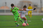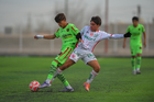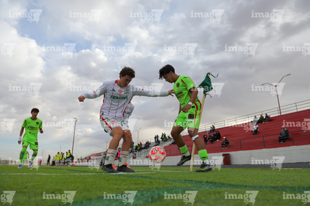Ciudad Juárez, Chihuahua, 7 de febrero de 2026. César Molina y Mateo Clark, durante el partido correspondiente a la jornada 5 del torneo Clausura 2026 de la Liga BBVA MX categoría Sub17, entre los Bravos de FC Juárez y los Rayos del Necaxa, realizado en realizado en el Estadio 8 de Diciembre. Foto: Imago7/ José Zamora