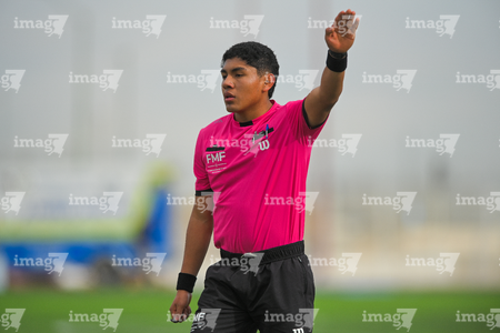 Ciudad Juárez, Chihuahua, 7 de febrero de 2026. Abraham Michael Velasco, árbitro central, durante el partido correspondiente a la jornada 5 del torneo Clausura 2026 de la Liga BBVA MX categoría Sub17, entre los Bravos de FC Juárez y los Rayos del Necaxa, realizado en realizado en el Estadio 8 de Diciembre. Foto: Imago7/ José Zamora