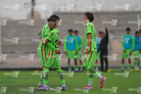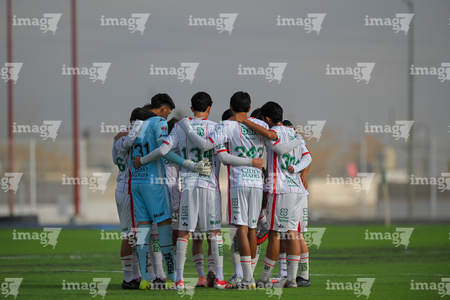 Ciudad Juárez, Chihuahua, 7 de febrero de 2026. Jugadores de Necaxa, durante el partido correspondiente a la jornada 5 del torneo Clausura 2026 de la Liga BBVA MX categoría Sub17, entre los Bravos de FC Juárez y los Rayos del Necaxa, realizado en realizado en el Estadio 8 de Diciembre. Foto: Imago7/ José Zamora
