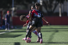 Zapopan, Jalisco, 15 de febrero de 2026. Kevin Martinez y Joseph González, durante el partido correspondiente a la jornada 6 del torneo Clausura 2026 de la Liga BBVA MX categoría Sub17, entre las Chivas Rayadas del Guadalajara y el Atlético San Luis, realizado en Verde Valle. Foto: Imago7/ Jair Terán