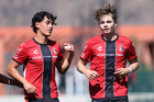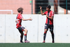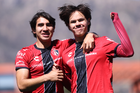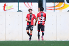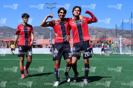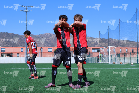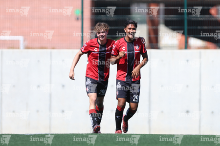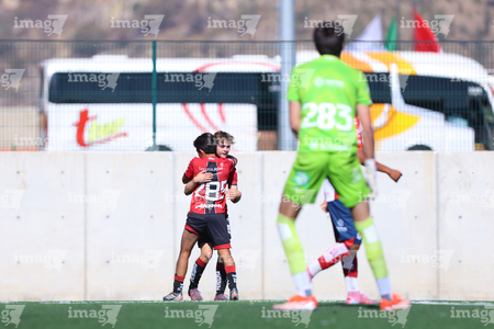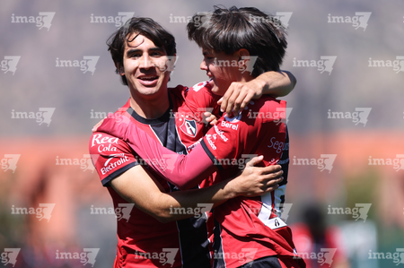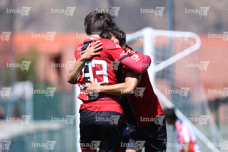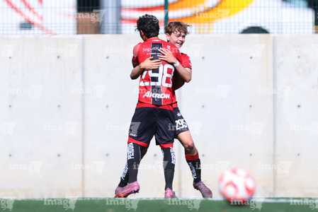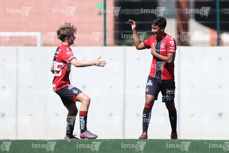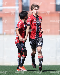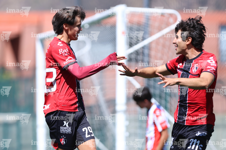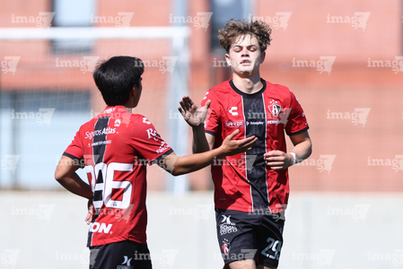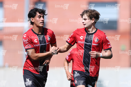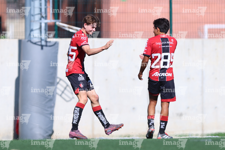 Guadalajara, Jalisco, 20 de marzo de 2026. Mateo Reyes y Joaquín Jackson en festejo de gol, durante el partido correspondiente a la jornada 11 del torneo Clausura 2026 de la Liga BBVA MX categoría Sub17, entre los Rojinegros del Atlas y el Atlético San Luis, realizado en la Academia AGA. Foto: Imago7/ Juan Carlos Cubeyro.