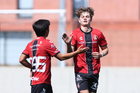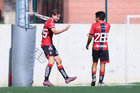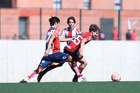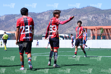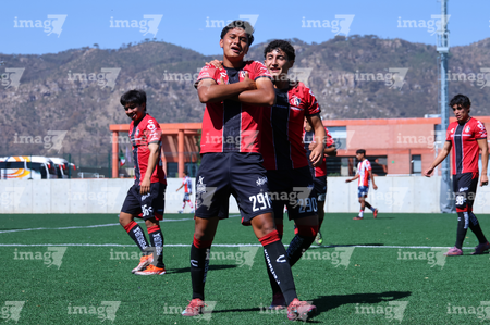 Guadalajara, Jalisco, 20 de marzo de 2026. Sebastián Hernández recibe gol, durante el partido correspondiente a la jornada 11 del torneo Clausura 2026 de la Liga BBVA MX categoría Sub17, entre los Rojinegros del Atlas y el Atlético San Luis, realizado en la Academia AGA. Foto: Imago7/ Juan Carlos Cubeyro.