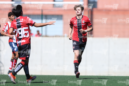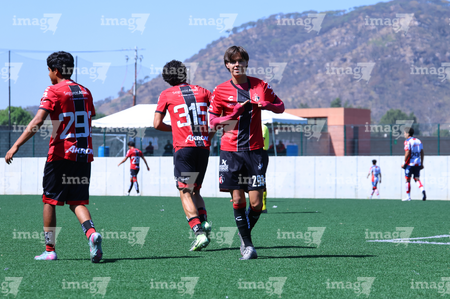 Guadalajara, Jalisco, 20 de marzo de 2026. Joaquín Jackson en festejo de gol, durante el partido correspondiente a la jornada 11 del torneo Clausura 2026 de la Liga BBVA MX categoría Sub17, entre los Rojinegros del Atlas y el Atlético San Luis, realizado en la Academia AGA. Foto: Imago7/ Juan Carlos Cubeyro.