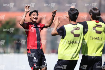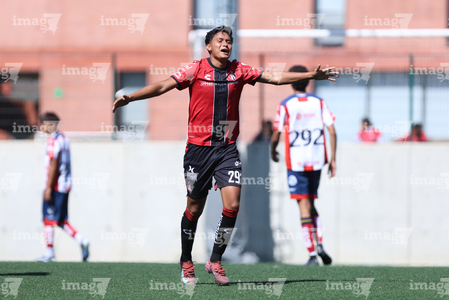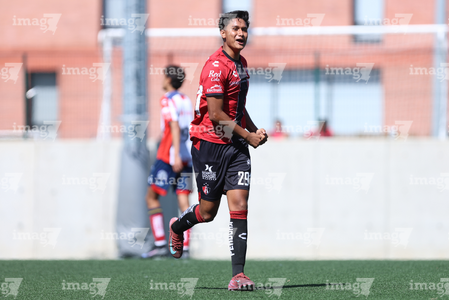 Guadalajara, Jalisco, 20 de marzo de 2026. Orlando Gutiérrez en festejo de gol, durante el partido correspondiente a la jornada 11 del torneo Clausura 2026 de la Liga BBVA MX categoría Sub17, entre los Rojinegros del Atlas y el Atlético San Luis, realizado en la Academia AGA. Foto: Imago7/ Juan Carlos Cubeyro.