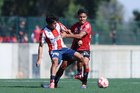 Guadalajara, Jalisco, 20 de marzo de 2026. Maddox Montalvo y Gael Solorio, durante el partido correspondiente a la jornada 11 del torneo Clausura 2026 de la Liga BBVA MX categoría Sub17, entre los Rojinegros del Atlas y el Atlético San Luis, realizado en la Academia AGA. Foto: Imago7/ Juan Carlos Cubeyro.