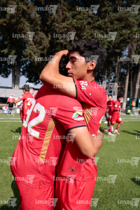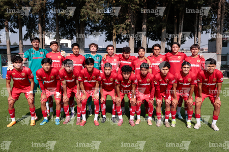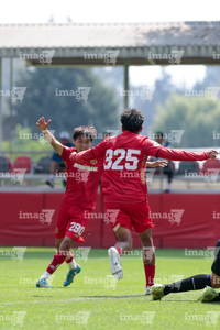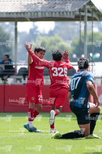 Metepec, Estado de México, 22 de abril de 2026. Jugadores del Toluca, durante el partido correspondiente a la jornada 13 del torneo Clausura 2026 de la Liga BBVA MX categoría Sub17, entre los Diablos Rojos del Toluca y los Gallos Blancos del Querétaro, realizado en las instalaciones de Metepec. Foto: Imago7/Daniel Arriaga