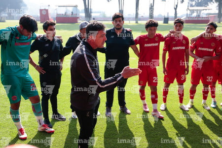 Metepec, Estado de México, 22 de abril de 2026. Nuilson Matias, Director Técnico y Jugadores del Toluca, durante el partido correspondiente a la jornada 13 del torneo Clausura 2026 de la Liga BBVA MX categoría Sub17, entre los Diablos Rojos del Toluca y los Gallos Blancos del Querétaro, realizado en las instalaciones de Metepec. Foto: Imago7/Daniel Arriaga