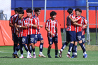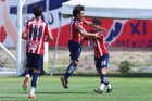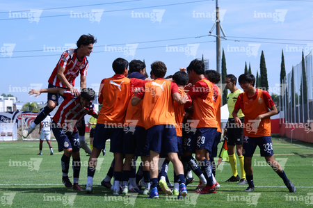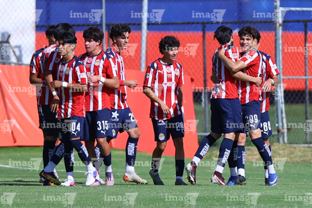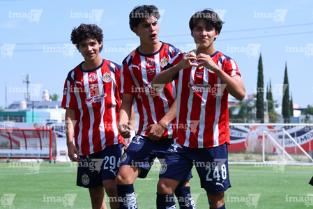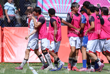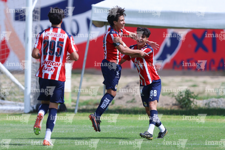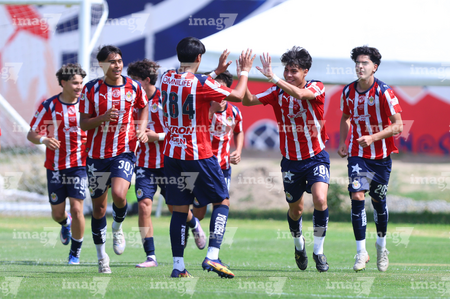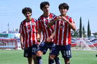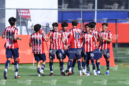 Zapopan, Jalisco, 11 de abril de 2026. Jugadores de Chivas en festejo de gol, durante el partido correspondiente a la jornada 14 del torneo Clausura 2026 de la Liga BBVA MX categoría Sub17, entre las Chivas Rayadas del Guadalajara y los Rojinegros del Atlas, realizado en Verde Valle. Foto: Imago7/ Juan Carlos Cubeyro.