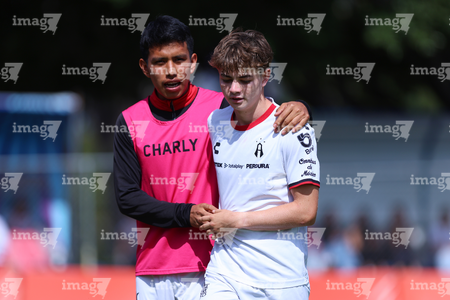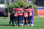 Zapopan, Jalisco, 11 de abril de 2026. Jugadores de Atlas, durante el partido correspondiente a la jornada 14 del torneo Clausura 2026 de la Liga BBVA MX categoría Sub17, entre las Chivas Rayadas del Guadalajara y los Rojinegros del Atlas, realizado en Verde Valle. Foto: Imago7/ Juan Carlos Cubeyro.