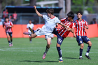 Zapopan, Jalisco, 11 de abril de 2026. Ángel Aguilar recibe gol, durante el partido correspondiente a la jornada 14 del torneo Clausura 2026 de la Liga BBVA MX categoría Sub17, entre las Chivas Rayadas del Guadalajara y los Rojinegros del Atlas, realizado en Verde Valle. Foto: Imago7/ Juan Carlos Cubeyro