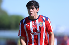 Zapopan, Jalisco, 11 de abril de 2026. Ángel Macías, durante el partido correspondiente a la jornada 14 del torneo Clausura 2026 de la Liga BBVA MX categoría Sub17, entre las Chivas Rayadas del Guadalajara y los Rojinegros del Atlas, realizado en Verde Valle. Foto: Imago7/ Juan Carlos Cubeyro.