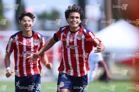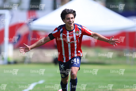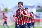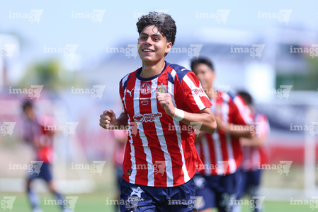 Zapopan, Jalisco, 11 de abril de 2026. Joaquín Jackson en festejo de gol, durante el partido correspondiente a la jornada 14 del torneo Clausura 2026 de la Liga BBVA MX categoría Sub17, entre las Chivas Rayadas del Guadalajara y los Rojinegros del Atlas, realizado en Verde Valle. Foto: Imago7/ Juan Carlos Cubeyro.