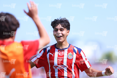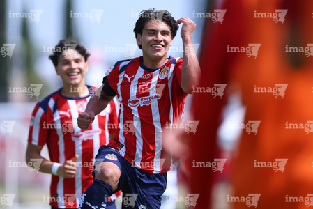 Zapopan, Jalisco, 11 de abril de 2026. Joseph González en festejo de gol, durante el partido correspondiente a la jornada 14 del torneo Clausura 2026 de la Liga BBVA MX categoría Sub17, entre las Chivas Rayadas del Guadalajara y los Rojinegros del Atlas, realizado en Verde Valle. Foto: Imago7/ Juan Carlos Cubeyro.