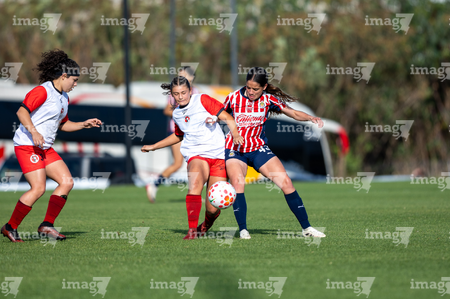 Zapopan, Jalisco, 11 de enero de 2025. , durante el partido correspondiente a la jornada 1 del torneo Clausura 2026 de la Liga BBVA MX Femenil categoría Sub19, entre las Chivas Rayadas del Guadalajara y las Xolas de Tijuana, realizado en Sports Arena. Foto: Imago7/ Jair Terán
