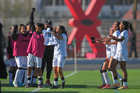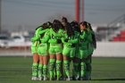 Ciudad Juárez, Chihuahua, 18 de enero de 2026. Jugadoras de FC Juárez, durante el partido correspondiente a la jornada 2 del torneo Clausura 2026 de la Liga BBVA MX Femenil categoría Sub19, entre las Bravas de FC Juárez y el Club Querétaro, realizado en realizado en el Estadio 8 de Diciembre. Foto: Imago7/ José Zamora