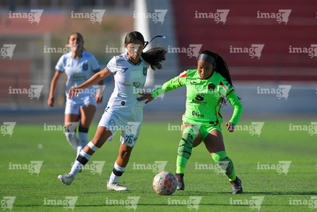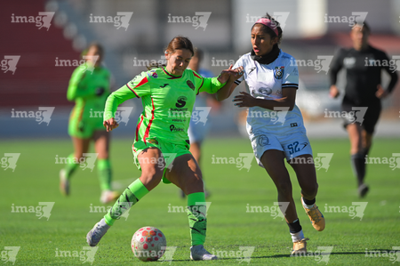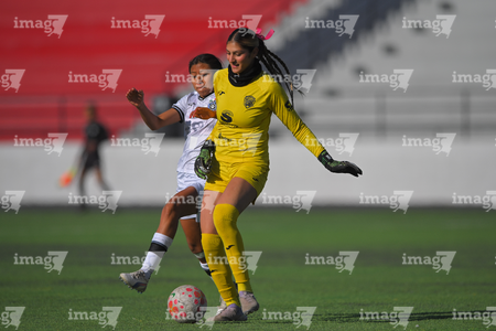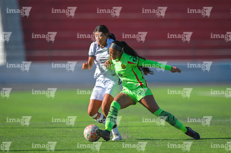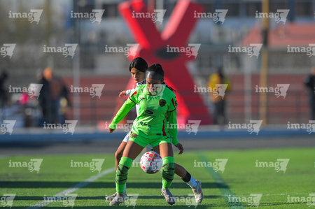 Ciudad Juárez, Chihuahua, 18 de enero de 2026. Ilse Cordero y Aime Ayuso, durante el partido correspondiente a la jornada 2 del torneo Clausura 2026 de la Liga BBVA MX Femenil categoría Sub19, entre las Bravas de FC Juárez y el Club Querétaro, realizado en realizado en el Estadio 8 de Diciembre. Foto: Imago7/ José Zamora