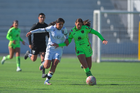 Ciudad Juárez, Chihuahua, 18 de enero de 2026. Jugadoras de Querétaro, durante el partido correspondiente a la jornada 2 del torneo Clausura 2026 de la Liga BBVA MX Femenil categoría Sub19, entre las Bravas de FC Juárez y el Club Querétaro, realizado en realizado en el Estadio 8 de Diciembre. Foto: Imago7/ José Zamora