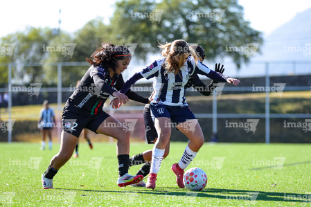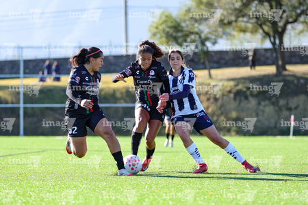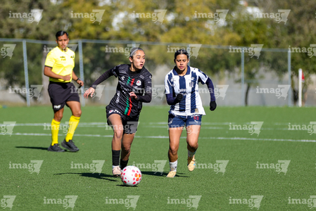 Guadalupe, Nuevo León, 18 de enero de 2025. , durante el partido correspondiente a la jornada 3 del torneo Clausura 2026 de la Liga BBVA MX Femenil categoría Sub19, entre las Rayadas del Monterrey y el Atlético San Luis, realizado en El Barrial. Foto: Imago7/ Nora Guerrero