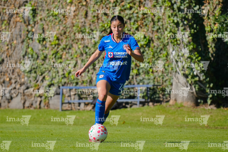 Ciudad de México, 24 de enero de 2026. Valentina Murrieta, durante el partido correspondiente a la jornada 3 del torneo Clausura 2026 de la Liga BBVA MX Femenil categoría Sub19, entre la Máquina Celeste del Cruz Azul y las Águilas del América, realizado en el Seminario Menor de Acoxpa. Foto: Imago7/ Diego Padilla