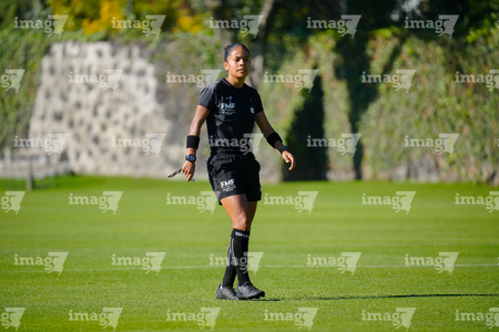 Ciudad de México, 24 de enero de 2026. Mara Citlalli Aguilar Luna, árbitra central, durante el partido correspondiente a la jornada 3 del torneo Clausura 2026 de la Liga BBVA MX Femenil categoría Sub19, entre la Máquina Celeste del Cruz Azul y las Águilas del América, realizado en el Seminario Menor de Acoxpa. Foto: Imago7/ Diego Padilla