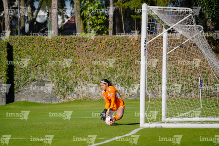 Ciudad de México, 24 de enero de 2026. Valentina Murrieta ataja balón, durante el partido correspondiente a la jornada 3 del torneo Clausura 2026 de la Liga BBVA MX Femenil categoría Sub19, entre la Máquina Celeste del Cruz Azul y las Águilas del América, realizado en el Seminario Menor de Acoxpa. Foto: Imago7/ Diego Padilla