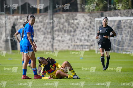 Ciudad de México, 24 de enero de 2026. Kemberly García resultó lesionada, durante el partido correspondiente a la jornada 3 del torneo Clausura 2026 de la Liga BBVA MX Femenil categoría Sub19, entre la Máquina Celeste del Cruz Azul y las Águilas del América, realizado en el Seminario Menor de Acoxpa. Foto: Imago7/ Diego Padilla
