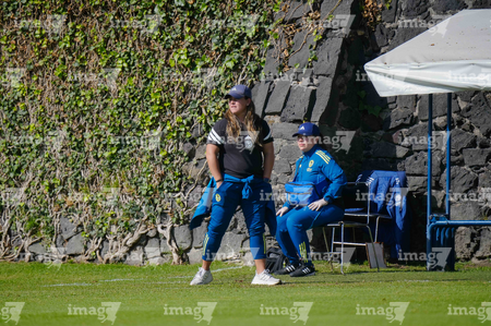Ciudad de México, 24 de enero de 2026. Lorena Galindo, directora técnica, durante el partido correspondiente a la jornada 3 del torneo Clausura 2026 de la Liga BBVA MX Femenil categoría Sub19, entre la Máquina Celeste del Cruz Azul y las Águilas del América, realizado en el Seminario Menor de Acoxpa. Foto: Imago7/ Diego Padilla