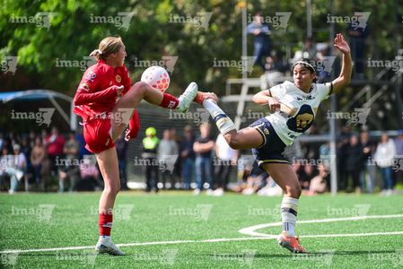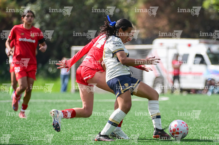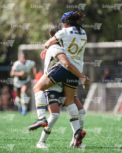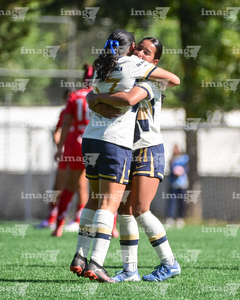 Ciudad de México, 24 de enero de 2026. Natalia Collado y Marbella Romero, durante el partido correspondiente a la jornada 3 del torneo Clausura 2026 de la Liga BBVA MX Femenil categoría Sub19, entre las Pumas de la UNAM y las Diablas Rojas del Toluca, realizado en Cantera. Foto: Imago7/ Alexis Chávez