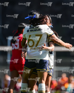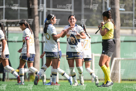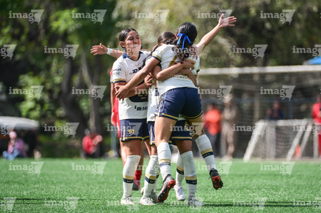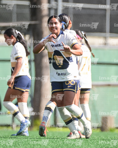 Ciudad de México, 24 de enero de 2026. Valentina Hernández en festejo de gol, durante el partido correspondiente a la jornada 3 del torneo Clausura 2026 de la Liga BBVA MX Femenil categoría Sub19, entre las Pumas de la UNAM y las Diablas Rojas del Toluca, realizado en Cantera. Foto: Imago7/ Alexis Chávez