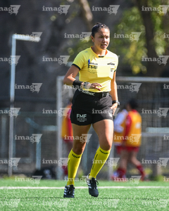 Ciudad de México, 24 de enero de 2026. Mayra Isabel Martínez Javier, árbitra central, durante el partido correspondiente a la jornada 3 del torneo Clausura 2026 de la Liga BBVA MX Femenil categoría Sub19, entre las Pumas de la UNAM y las Diablas Rojas del Toluca, realizado en Cantera. Foto: Imago7/ Alexis Chávez