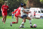 Ciudad de México, 24 de enero de 2026. Natalia Ugalde anota gol, durante el partido correspondiente a la jornada 3 del torneo Clausura 2026 de la Liga BBVA MX Femenil categoría Sub19, entre las Pumas de la UNAM y las Diablas Rojas del Toluca, realizado en Cantera. Foto: Imago7/ Alexis Chávez