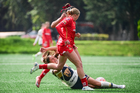 Ciudad de México, 24 de enero de 2026. Daniela Gallegos en lamento, durante el partido correspondiente a la jornada 3 del torneo Clausura 2026 de la Liga BBVA MX Femenil categoría Sub19, entre las Pumas de la UNAM y las Diablas Rojas del Toluca, realizado en Cantera. Foto: Imago7/ Alexis Chávez