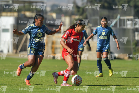 Metepec, Estado de México, 21 de febrero de 2025. , durante el partido correspondiente a la jornada 7 del torneo Clausura 2025 de la Liga BBVA MX Femenil categoría Sub19, entre las Diablas Rojas del Toluca y las Águilas del América, realizado en las instalaciones de Metepec. Foto: Imago7/ Arturo Hernández