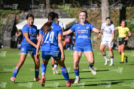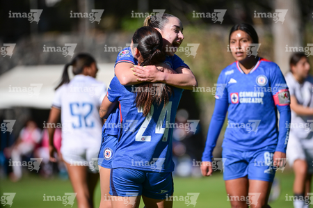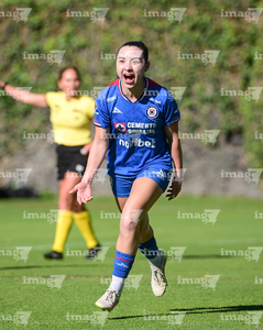Ciudad de México, 28 de febrero de 2026. María Montaño en festejo de gol, durante el partido correspondiente a la jornada 8 del torneo Clausura 2026 de la Liga BBVA MX Femenil categoría Sub19, entre la Máquina Celeste del Cruz Azul y el Club Querétaro, realizado en el Seminario Menor de Acoxpa. Foto: Imago7/ Alexis Chávez