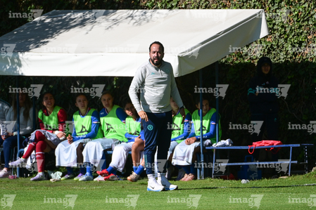 Ciudad de México, 28 de febrero de 2026. Jorge Camacho, director técnico, durante el partido correspondiente a la jornada 8 del torneo Clausura 2026 de la Liga BBVA MX Femenil categoría Sub19, entre la Máquina Celeste del Cruz Azul y el Club Querétaro, realizado en el Seminario Menor de Acoxpa. Foto: Imago7/ Alexis Chávez