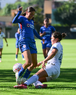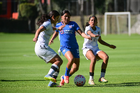 Ciudad de México, 28 de febrero de 2026. Mariana Oropeza (C), durante el partido correspondiente a la jornada 8 del torneo Clausura 2026 de la Liga BBVA MX Femenil categoría Sub19, entre la Máquina Celeste del Cruz Azul y el Club Querétaro, realizado en el Seminario Menor de Acoxpa. Foto: Imago7/ Alexis Chávez