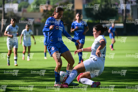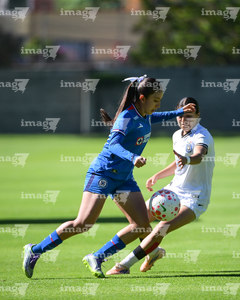 Ciudad de México, 28 de febrero de 2026. Adriana Cruz (I), durante el partido correspondiente a la jornada 8 del torneo Clausura 2026 de la Liga BBVA MX Femenil categoría Sub19, entre la Máquina Celeste del Cruz Azul y el Club Querétaro, realizado en el Seminario Menor de Acoxpa. Foto: Imago7/ Alexis Chávez