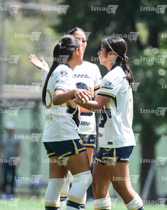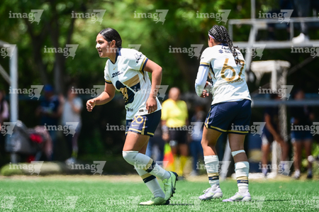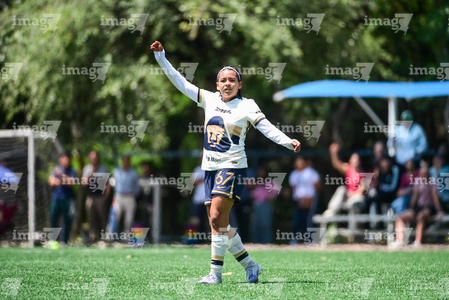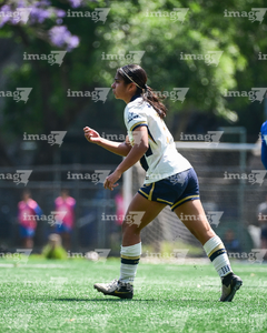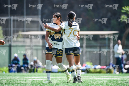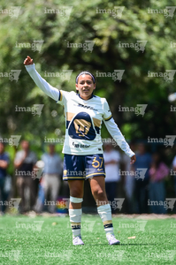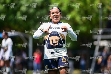 Ciudad de México, 18 de abril de 2026. Valentina Hernández en festejo de gol, durante el partido correspondiente a la jornada 15 del torneo Clausura 2026 de la Liga BBVA Femenil categoría Sub19, entre las Pumas de la UNAM y la Máquina Celeste de Cruz Azul, realizado en Cantera. Foto: Imago7/ Alexis Chavez