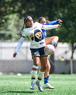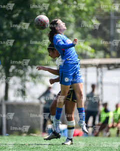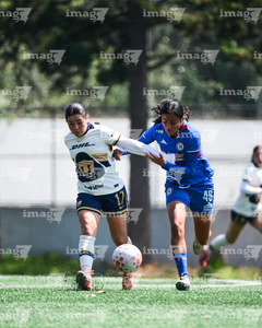 Ciudad de México, 18 de abril de 2026. Jimena Che y Aranza Álvarez, durante el partido correspondiente a la jornada 15 del torneo Clausura 2026 de la Liga BBVA Femenil categoría Sub19, entre las Pumas de la UNAM y la Máquina Celeste de Cruz Azul, realizado en Cantera. Foto: Imago7/ Alexis Chavez