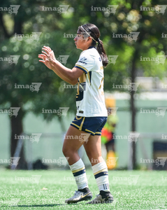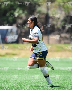 Ciudad de México, 18 de abril de 2026. Jimena Che en festejo de gol, durante el partido correspondiente a la jornada 15 del torneo Clausura 2026 de la Liga BBVA Femenil categoría Sub19, entre las Pumas de la UNAM y la Máquina Celeste de Cruz Azul, realizado en Cantera. Foto: Imago7/ Alexis Chavez