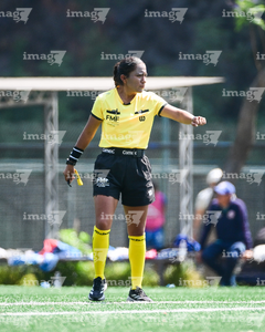 Ciudad de México, 18 de abril de 2026. Erika Adriana Saucedo Flores, árbitra central, durante el partido correspondiente a la jornada 15 del torneo Clausura 2026 de la Liga BBVA Femenil categoría Sub19, entre las Pumas de la UNAM y la Máquina Celeste de Cruz Azul, realizado en Cantera. Foto: Imago7/ Alexis Chavez