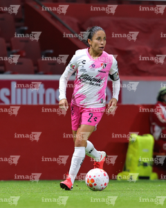Toluca, Estado de México, 12 de enero de 2026. Dirce Delgado, durante el partido correspondiente a la jornada 2 del torneo Clausura 2026 de la Liga BBVA MX Femenil, entre las Diablas Rojas del Toluca y las Rojinegras del Atlas, realizado en el estadio Nemesio Diez. Foto: Imago7/Jesús Esquivel
