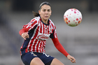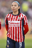 Zapopan, Jalisco, 4 de enero de 2026. Celeste Espino, durante el partido correspondiente a la jornada 1 del torneo Clausura 2026 de la Liga BBVA MX Femenil, entre las Chivas Rayadas del Guadalajara y el Atlético San Luis, realizado en el estadio Akron. Foto: Imago7/ Juan Carlos Cubeyro.