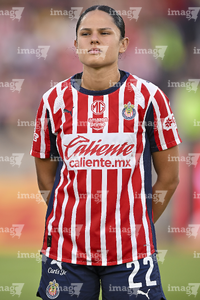 Zapopan, Jalisco, 4 de enero de 2026. Casandra Montero, durante el partido correspondiente a la jornada 1 del torneo Clausura 2026 de la Liga BBVA MX Femenil, entre las Chivas Rayadas del Guadalajara y el Atlético San Luis, realizado en el estadio Akron. Foto: Imago7/ Juan Carlos Cubeyro.