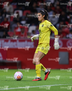 Toluca, Estado de México, 30 de enero de 2026. Karime Abud, durante el partido correspondiente a la jornada 6 del torneo Clausura 2026 de la Liga BBVA MX Femenil, entre las Diablas Rojas del Toluca y las Bravas de FC Juárez, realizado en el estadio Nemesio Diez. Foto: Imago7/Jesús Esquivel