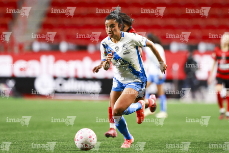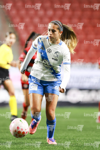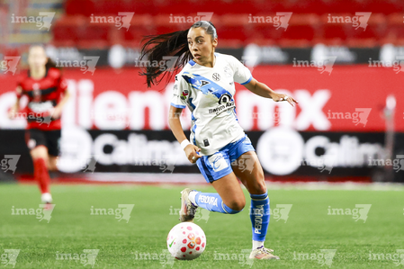Tijuana, Baja California, 31 de enero de 2026. Karyme Martínez, durante el partido correspondiente a la jornada 6 del torneo Clausura 2026 de la Liga BBVA MX Femenil, entre las Xolas de Tijuana y el Club Puebla, realizado en el estadio Caliente. Foto: Imago7/ Alejandro Gutiérrez Mora