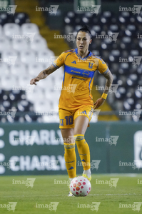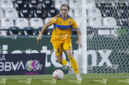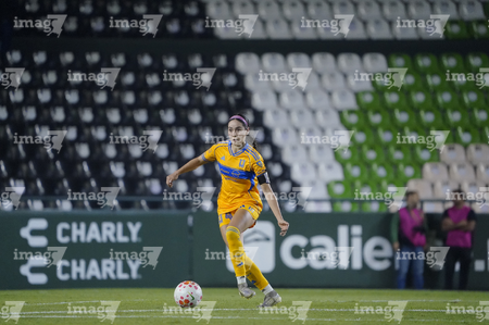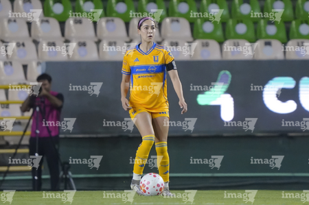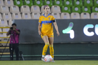 León, Guanajuato, 16 de enero de 2026. Myra Delgadillo, durante el partido correspondiente a la jornada 3 del torneo Clausura 2026 de la Liga BBVA MX Femenil, entre las Esmeraldas del León y las Tigres de la UANL, realizado en el estadio León. Foto: Imago7/ Sebastian Laureano Miranda