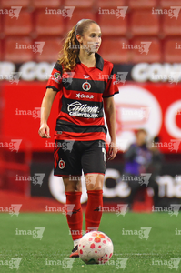 Toluca, Estado de México, 5 de enero de 2026. Bibiana Quintos, durante el partido correspondiente a la jornada 1 del torneo Clausura 2026 de la Liga BBVA MX Femenil, entre las Diablas Rojas del Toluca y las Xolas de Tijuana, realizado en el estadio Nemesio Diez. Foto: Imago7/ Jesús Esquivel