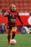 Toluca, Estado de México, 5 de enero de 2026. Danielle Fuentes, durante el partido correspondiente a la jornada 1 del torneo Clausura 2026 de la Liga BBVA MX Femenil, entre las Diablas Rojas del Toluca y las Xolas de Tijuana, realizado en el estadio Nemesio Diez. Foto: Imago7/ Jesús Esquivel