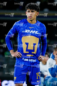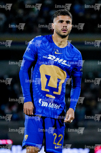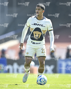 Ciudad de México, 18 de enero de 2026. Jesús Rivas, durante el partido correspondiente a la jornada 3 del torneo Clausura 2026 de la Liga BBVA MX, entre los Pumas de la UNAM y los Esmeraldas del León, realizado en el estadio Olímpico Universitario. Foto: Imago7/Etzel Espinosa